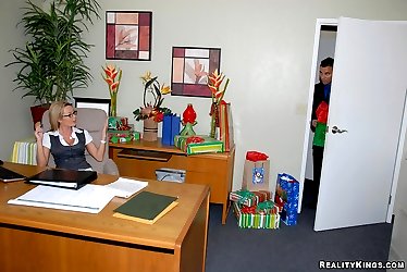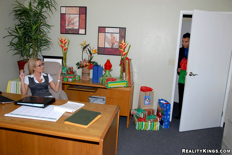 Super hot big tits babe behind office desk calls in her employee for a raise but only if he pounds her hot pussy against the desk in these fucking cumfaced pics